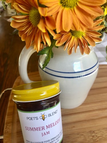 With a heart steeped in poetry and hands seasoned by years in the kitchen, Bob sees more than just ingredients. He sees verses waiting to be written. As a beekeeper, a former sous chef, and a lifelong artist, Bob brings his unique blend of craft and creativity to every jar of honey and jam. In the hum of the hive, he hears rhythm. In the ripe fruit, he finds inspiration. And when he blends the two, something beautiful happens–you get to taste poetry.